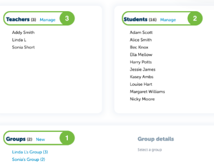 - To share your class & groups with other teachers at your school, select Manage.