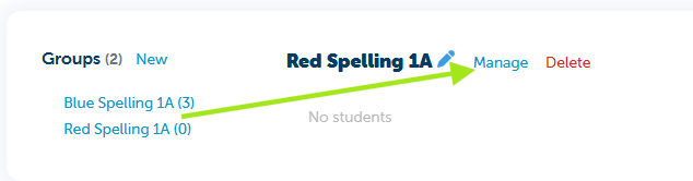 - Once created, Red Spelling 1A will appear without students assigned.