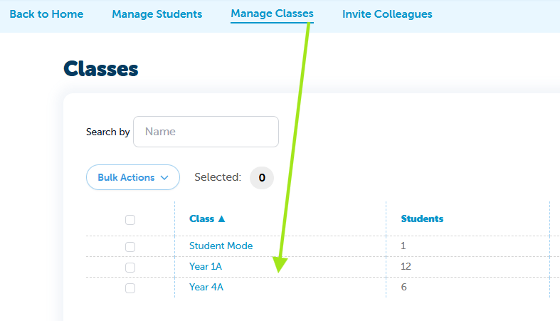 From Manage Classes, select your class - in this example, we’ve selected Year 1A.