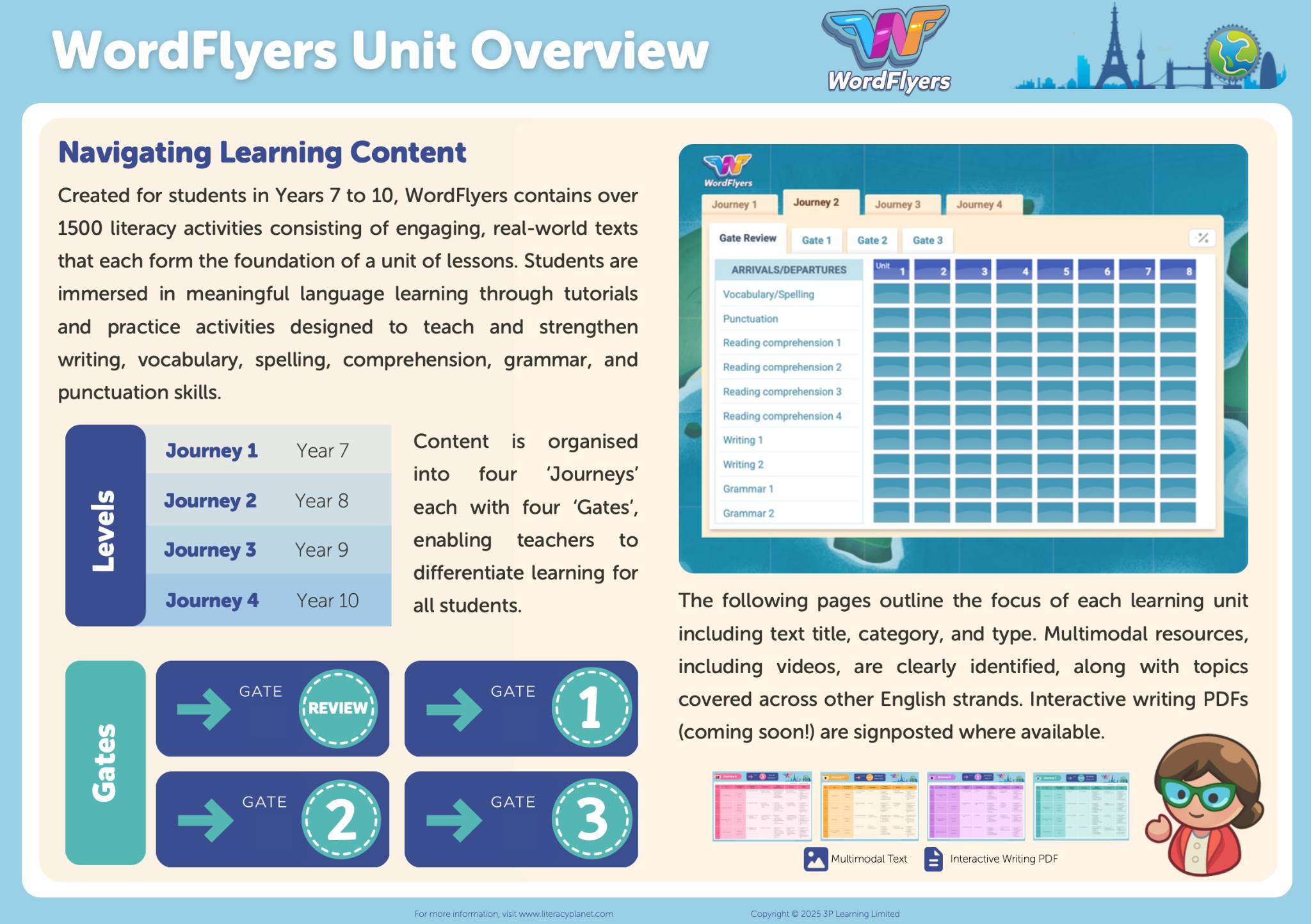 You can find a WordFlyers feature sheet with in-depth information about the content and how to navigate it on the platform here:
